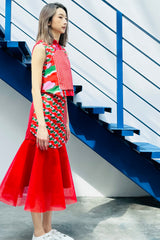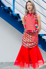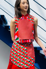 LUNAR 2024 TT04B || RED BROCCOLI CROPPED 'CHEONGSAM' TOP
